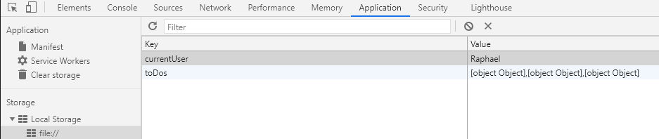 - 그러나 지역저장소에는 [object Object] 라는 이름으로 3개의 데이터가 저장되어 있는 것을 볼 수 있다.