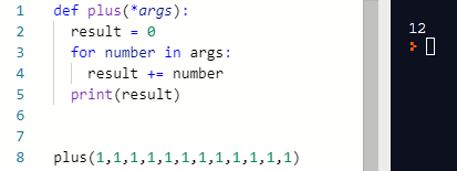 - 예를 들어 계산기를 프로그램으로 구현할 때 무제한으로(당연히 표시할 수 있는 최대값의 제한은 있으나) 덧셈을 하는 기능을 만든다면? *args를 사용하면 간단히 구현할 수 있다.