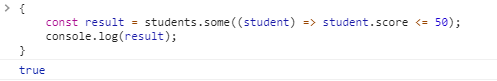 - 배열의 요소 중 콜백함수의 연산에 대해 true를 반환하는 요소가 있는지 없는지 확인한다.