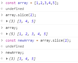 - splice와는 다르게 기존의 배열에는 영향을 주지않고 입력한 index 범위만큼 복사하여 반환한다.