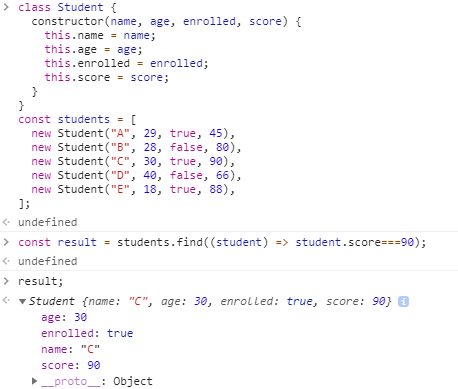 - predicate가 true일 때, 배열에서 첫번째로 검색된 값을 반환한다.