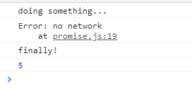 - promise의 결과여부와는 상관없이 항상 실행되는 기능을 작성하고 싶을 때 finally를 사용한다.