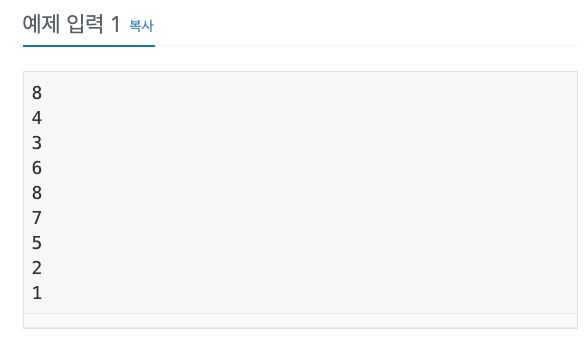ex) 8이 첫번째 입력값이라면 이를 제외하고 앞으로 8개 정수가 더 입력된다.