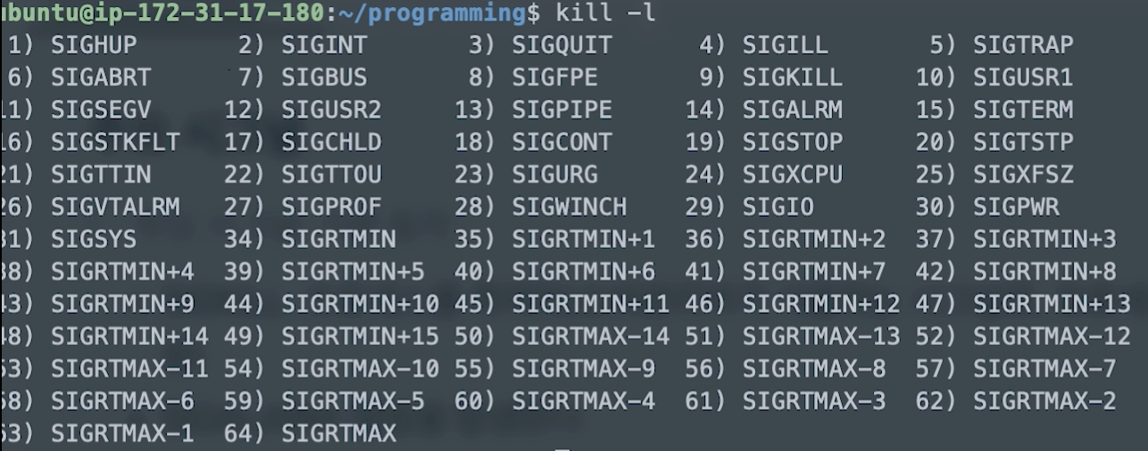 - 리눅스의 경우, 64개의 시그널이 존재한다.