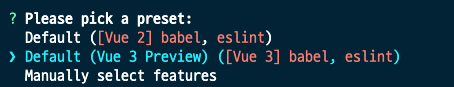 - 최신 버전인 Vue 3를 사용할 예정이므로, 두번째 옵션을 선택합니다.