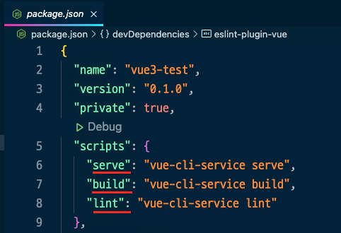 - 터미널의 명령을 통해 생성한 vue프로젝트를 open하면, package.json 파일이 있습니다.