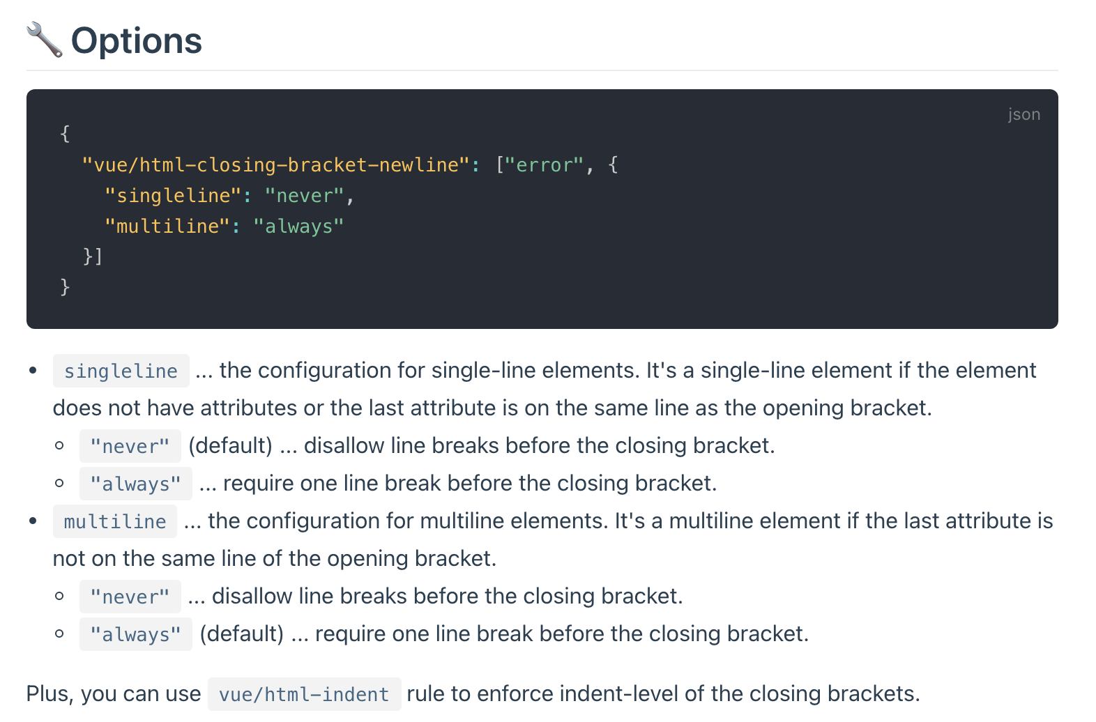 vue/html-closing-bracket-newline | eslint-plugin-vue