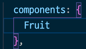 - import해온 Fruit를 태그로써 사용하기 위해 component 속성에 Fruit라는 이름으로 등록한다.