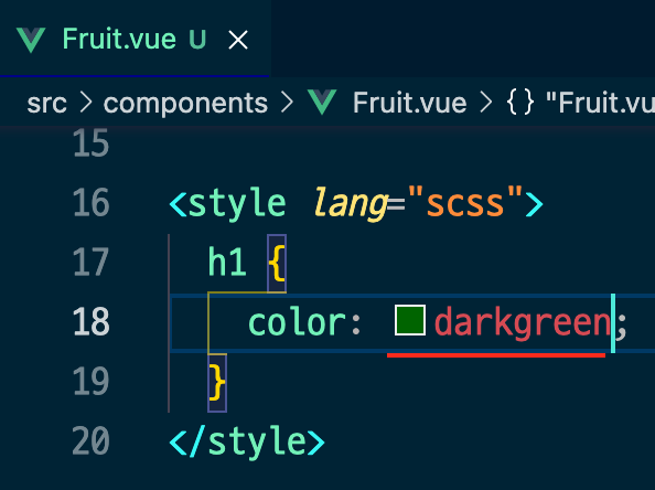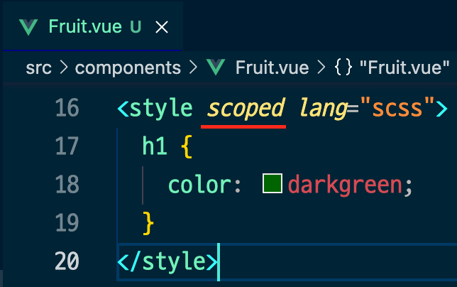 - 하지만, Fruit.vue에서 h1 태그의 CSS를 변경하면 h1을 갖고있는 다른 component에 영향을 미친다.