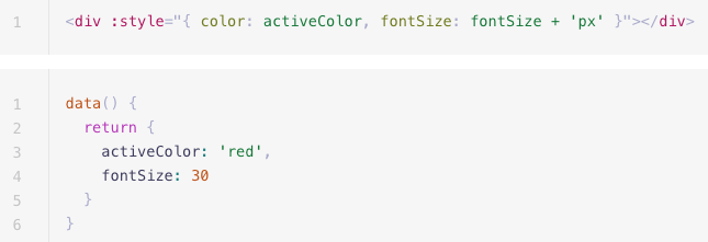 - style 속성에 콜론(:)을 명시하여 v-bind를 적용한다.