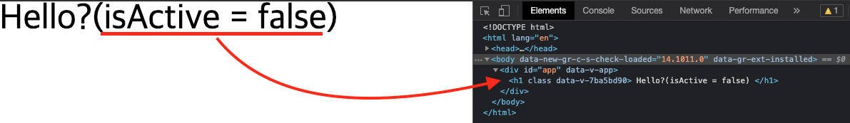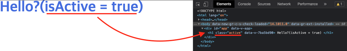 - isActive의 값이 false인 경우, h1 태그의 class 속성이 추가되어 있으나 active라는 값은 없다.