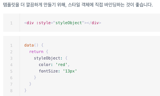 - 위의 공식문서 링크는 Vue에서 제공하는 클래스와 스타일 바인딩에 대한 내용을 설명한 공식 문서이다.