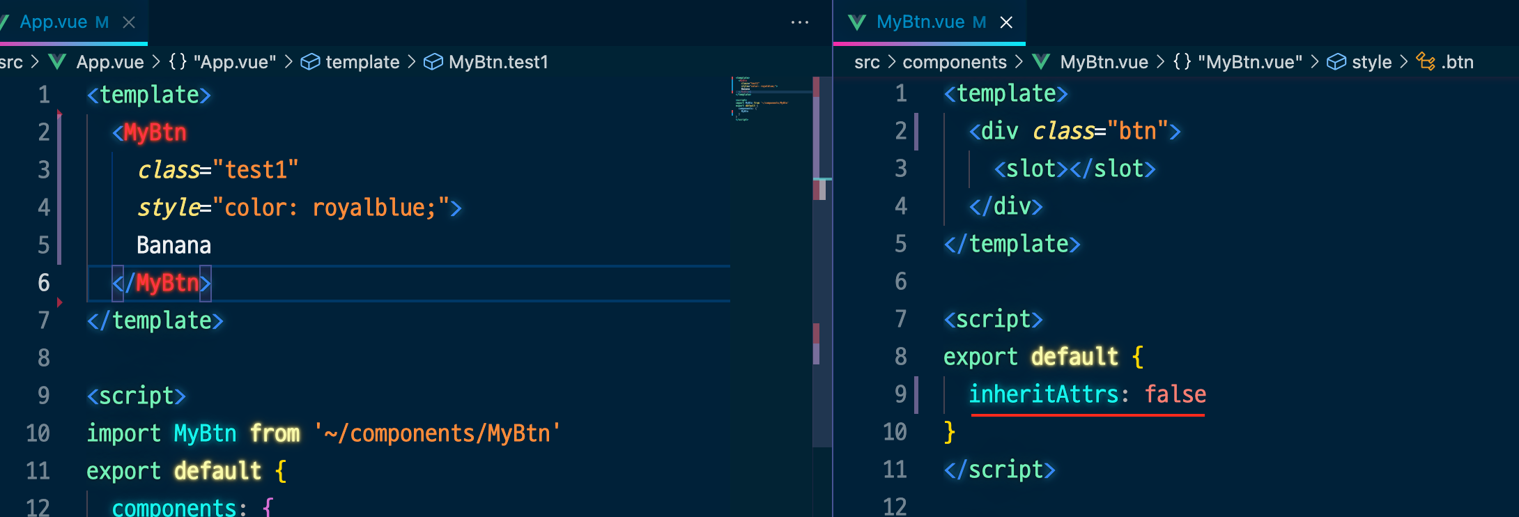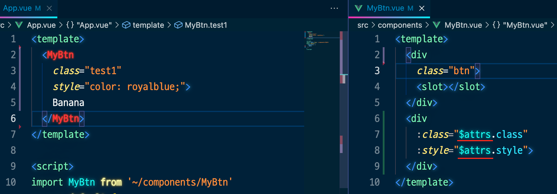 <MyBtn class="test">
