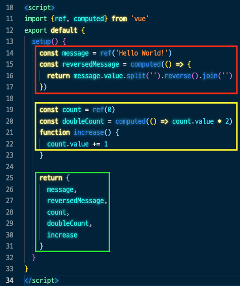 - 이 코드를 컴포지션 API를 통해서 정리하면 다음과 같다.