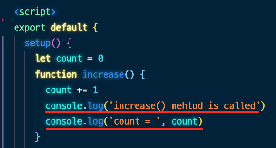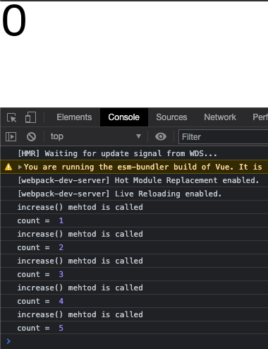 - 위의 코드는 화면의 숫자를 클릭하면 increase 메소드가 작동하여 숫자가 증가하는 방식이다.