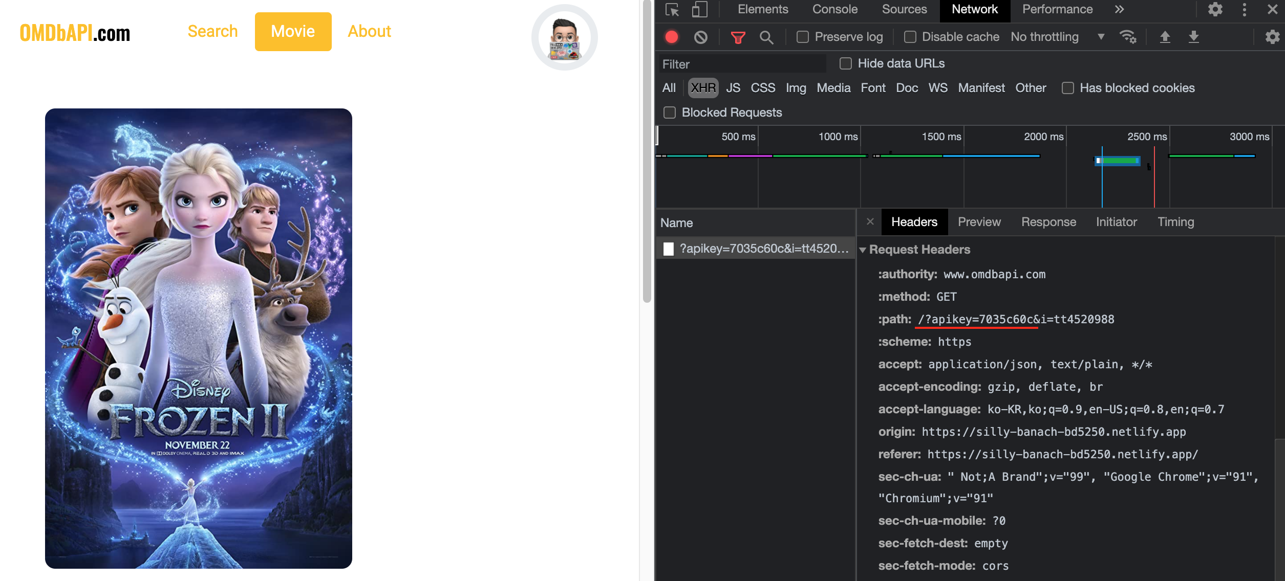 - 가장 문제가 되는 부분은 영화를 검색했을 때, API key가 공개된다는 부분이다.