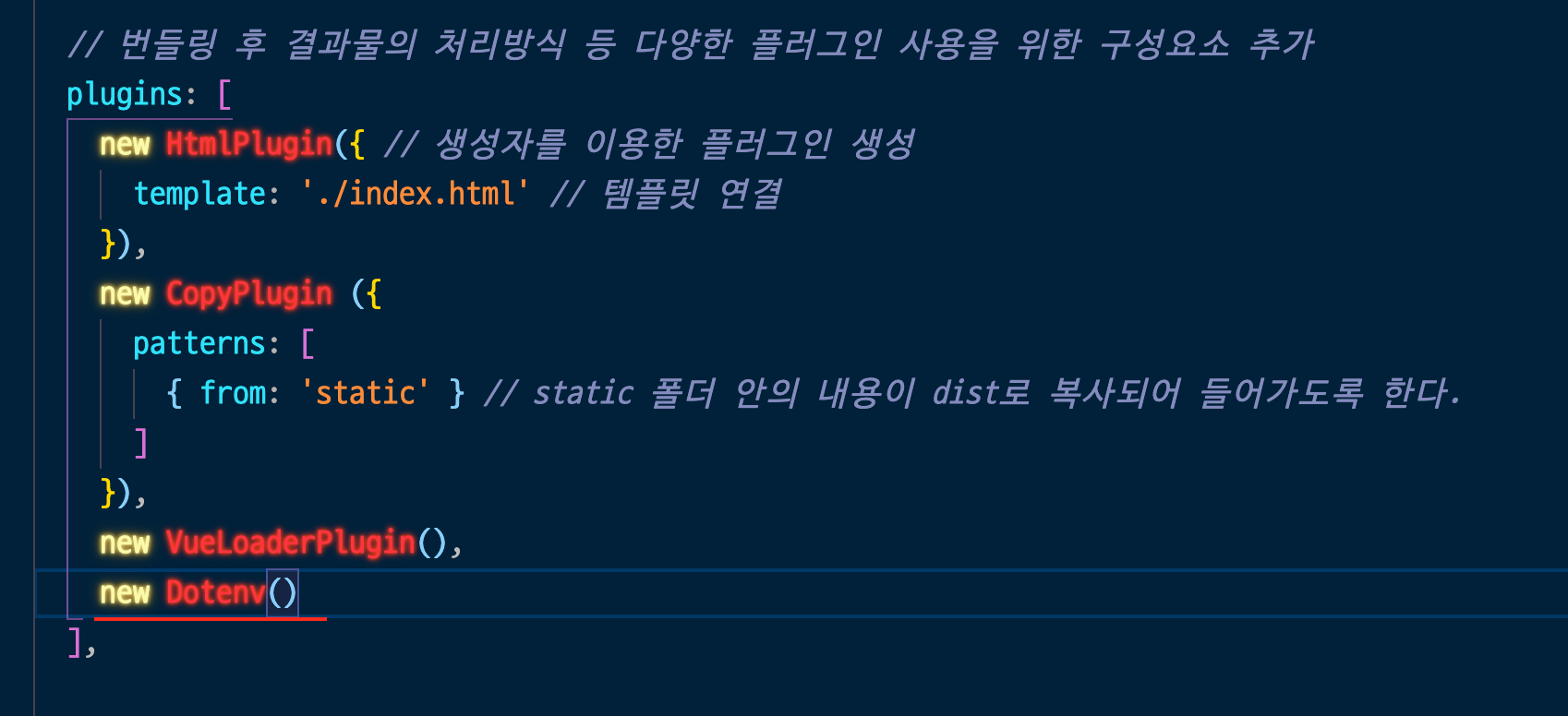 - webpack.config.js에 다음과 같이 작성한다.
