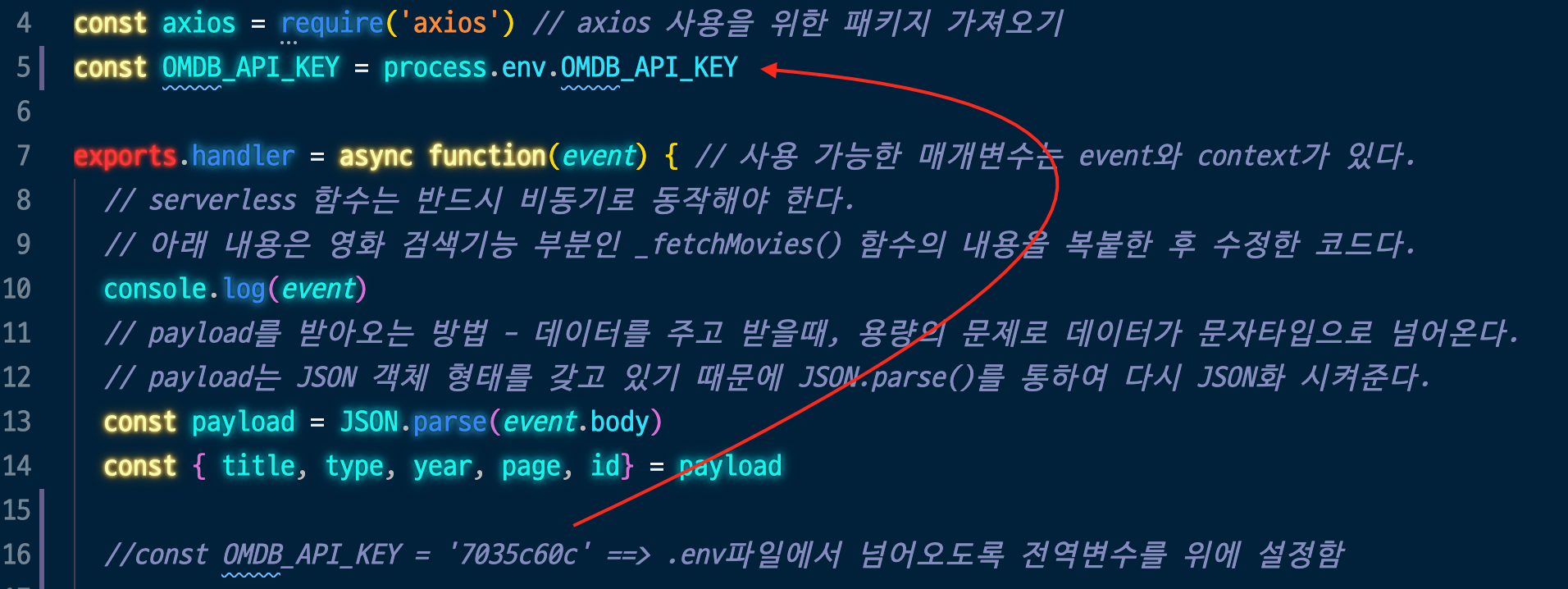 - 이제 기존에 API key가 노출되어 있던 소스코드 부분을 수정한다.