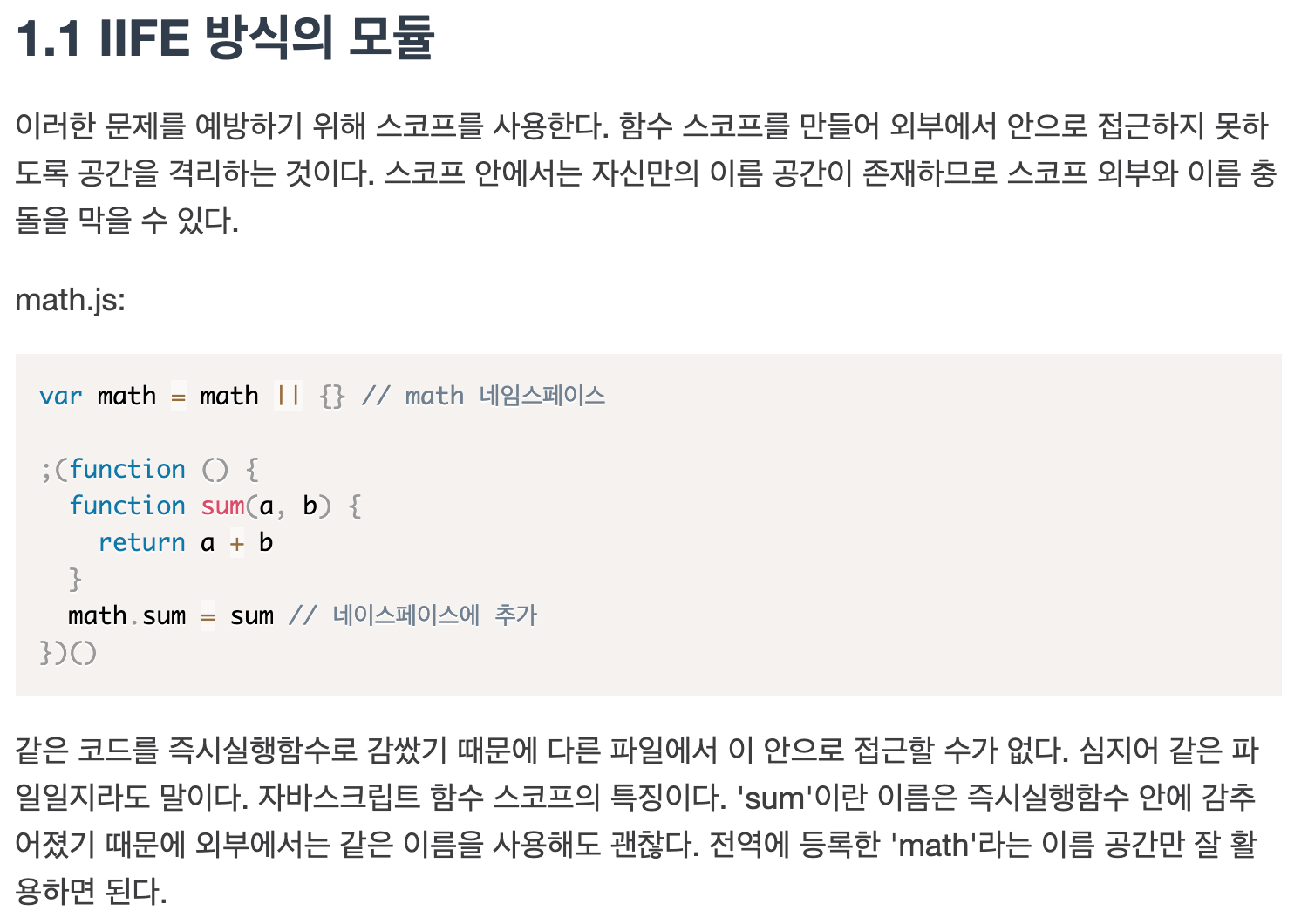 더불어, JS파일이 많아지면서 서로의 scope를 침범하여 변수간의 충돌을 일으킬 위험성이 증가했다.