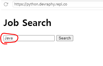 - form을 사용해서 /report라는 경로를 설정하고 get방식을 이용하였습니다. 중요한 data를 전송하는 것이 아니기 때문에 post방식이 아니라 get방식을 사용한거죠. 그리고 required name을 사용해서 word로 설정하였습니다. required name은 속성으로 URL에서 작동하는 input값에 대한 매개변수라고 생각하시면 될 것 같습니다. 이제 main에서 실행해서 어떻게 작동하는지 알아보겠습니다. * get과 post 방식에 대해 잘 모르시는 분들은 html공부나 해당 강좌를 먼저 듣기를 권장드립니다.