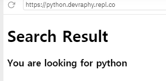 - 이렇게 위의 코드를 실행해서 웹페이지에 검색을 하면 프롬프트에 어떤 단어가 검색되었는지 출력됩니다. 이제 request.args.get('word)를 변수에 담아서 이용할 수 있겠네요. 해봅시다.