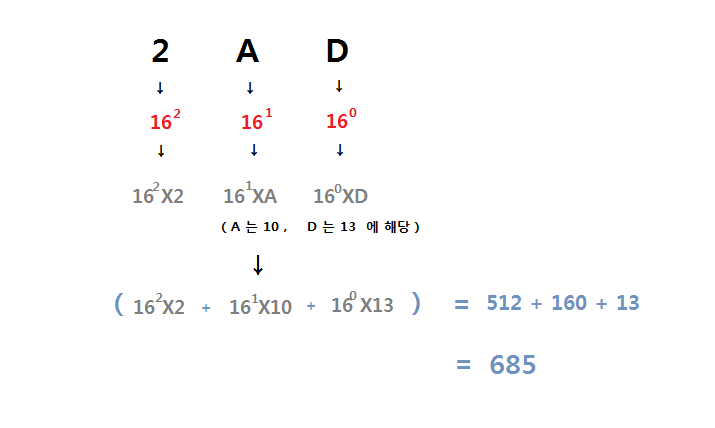- 사람이 이해할 수 있도록 2진법을 다양한 진법으로 확장하여 표현한다.