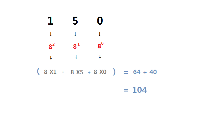 - 8진법은 0~7까지 사용하여 수를 표현하는 방법이다.