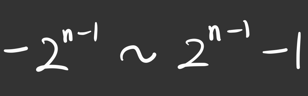 - 2의 보수는 다음의 표현 범위를 갖는다.