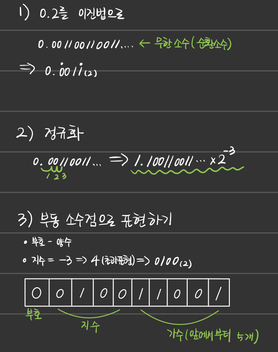 - 십진수인 0.2를 부동소수점으로 만들었다.