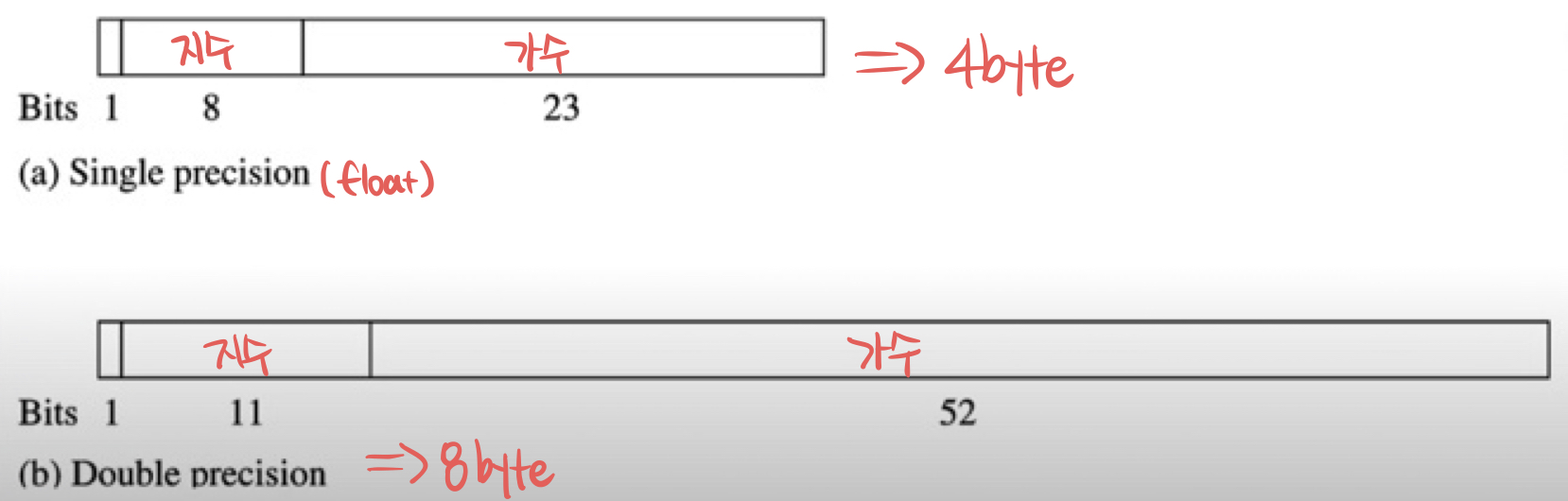 ▶ 가수비트의 크기가 커진다 = 실수 표현의 정밀도가 높아진다.