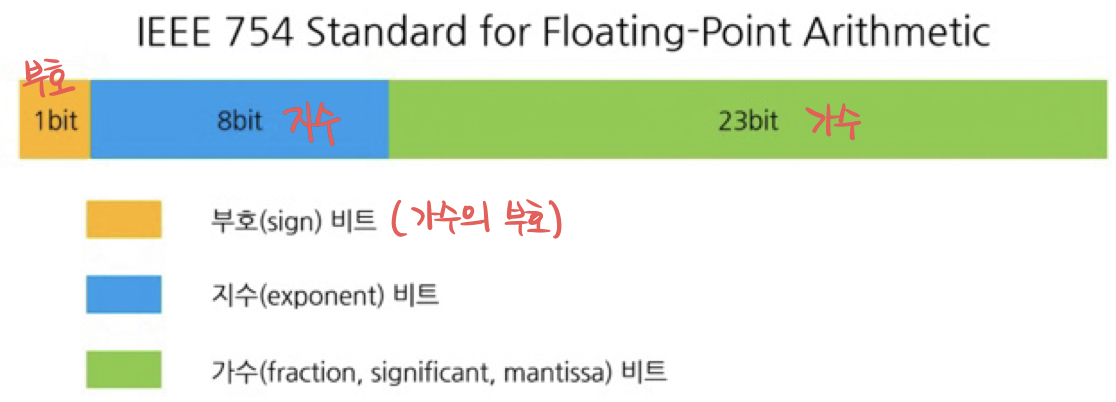 - 부호 비트도 존재하는데, 이는 가수의 부호를 의미하는 것이다.
