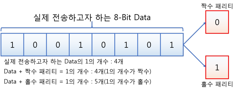 - 홀수 패리티: 1의 개수가 홀수가 되도록 맞춘다.