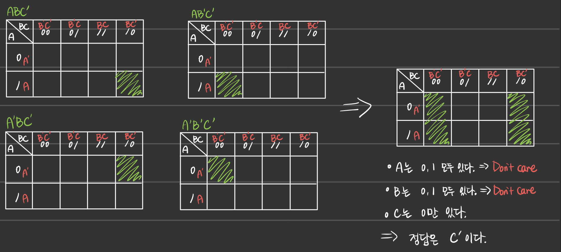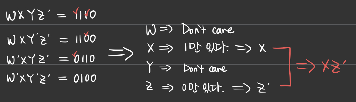 - 이는 카르노 맵이 순환한다는 특성으로 인해 가능한 것이다.