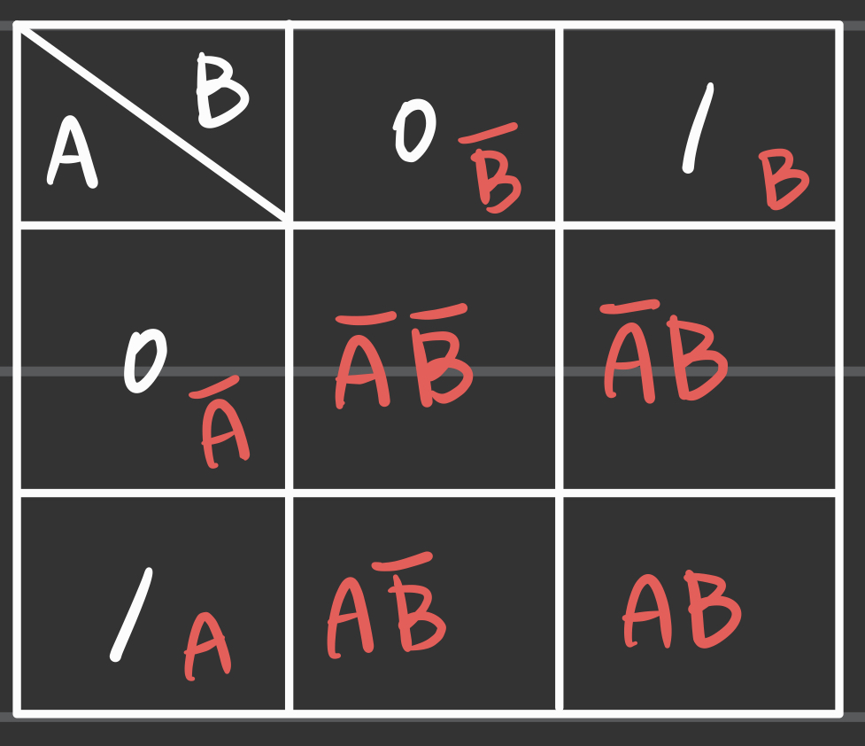 - 카르노 맵은 부울 대수보다 빠르게 진리표를 만들 수 있는 방법으로,