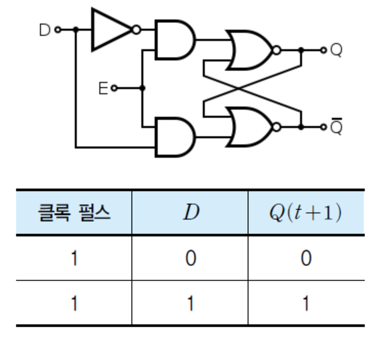 - 입력신호 D가 클럭펄스에 의해서 변화 없이 그대로 출력에 전달되는 특성을 가지고 있다.