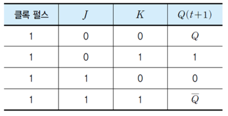 - J는 S(set)에, K는 R(reset)에 대응하는 입력이다.