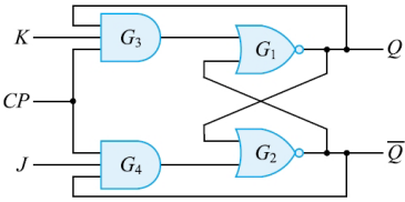 - RS 플립플롭에서 S=1, R=1인 경우 불능 상태가 되는 것을 해결한 논리회로다.