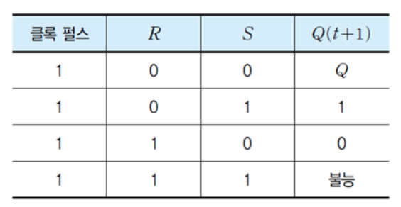 - 입력 단자 R과 S에 동시에 1이 입력되는 것을 회로적으로 차단한다.