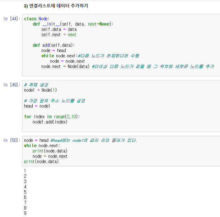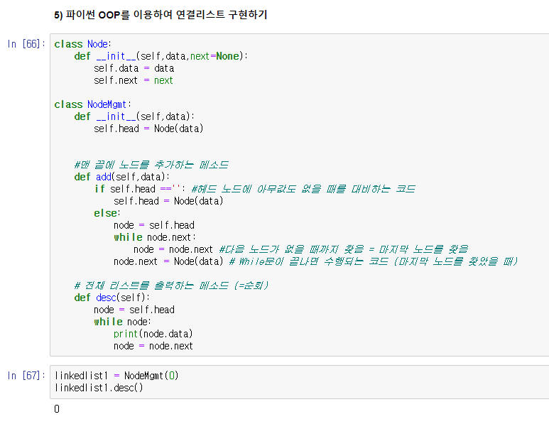 - 연결 리스트에서는 파이썬의 객체지향 프로그래밍에 대한 이해를 필요로 한다.