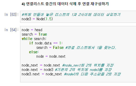 [연결리스트 중간의 데이터 삭제 후 연결 재구성하기]