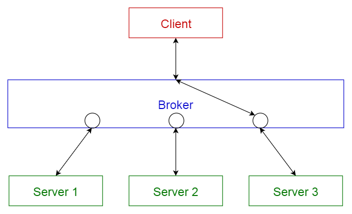 - 서버의 기능을 브로커가 이어주는 방식으로, 클라이언트의 요청에 따라 적합한 서비스로 리다이렉트 시킨다.