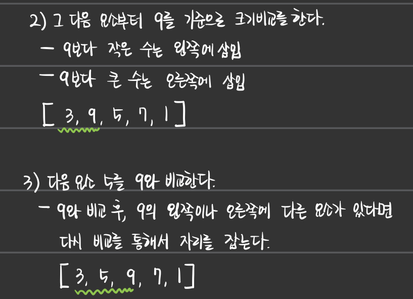 print(insertion_sort(case = [9, 3, 5, 7, 1]))'Algorithm > 알고리즘 공부노트' 카테고리의 다른 글