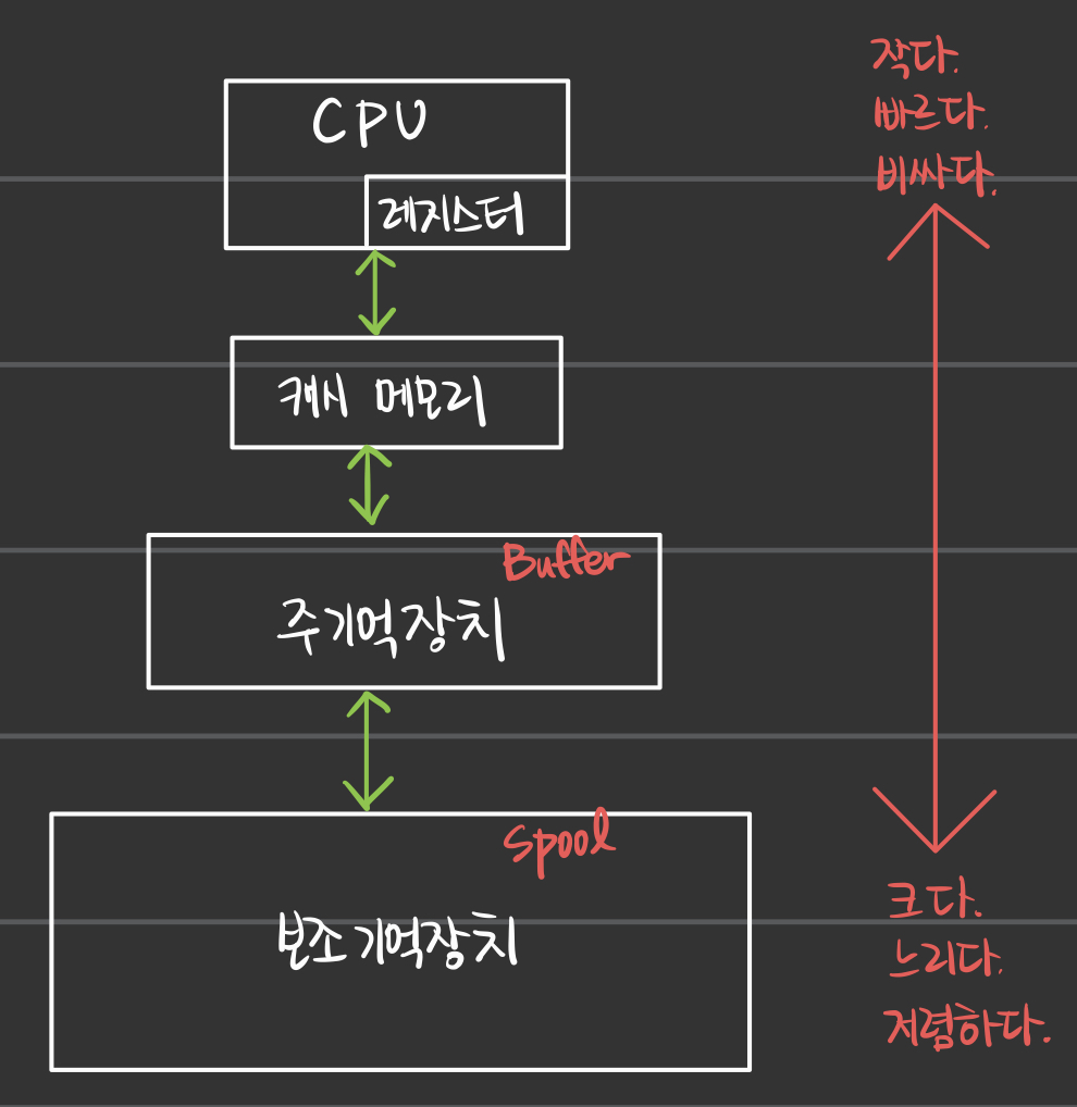 - 그러므로 Spool, Buffer, Cache를 이용하여 속도차이를 극복한다.
