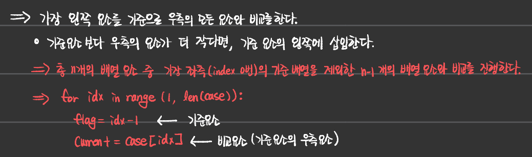 - 여기서부터 기준배열과 비교배열이라고 작성했는데, 배열이 아니라 요소를 의미하는 것임을 정정합니다.