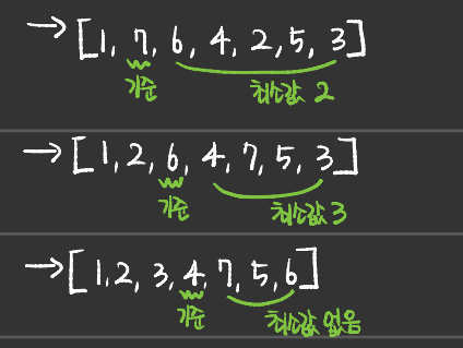 - 여기서부터 기준배열과 비교배열이라고 작성했는데, 배열이 아니라 요소를 의미하는 것임을 정정합니다.