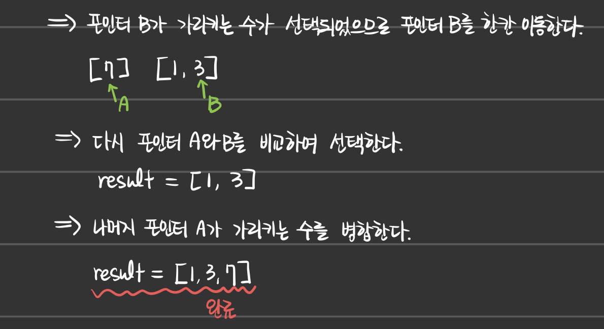 # 배열의 길이보다 작은 경우 = left_idx 또는 right_idx가 가리킬 다음 요소가 있는 경우