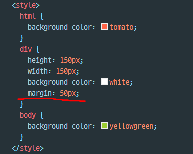 - 정확한 이해를 위해 div태그의 상하좌우 모두에 margin 50px를 적용해보자.