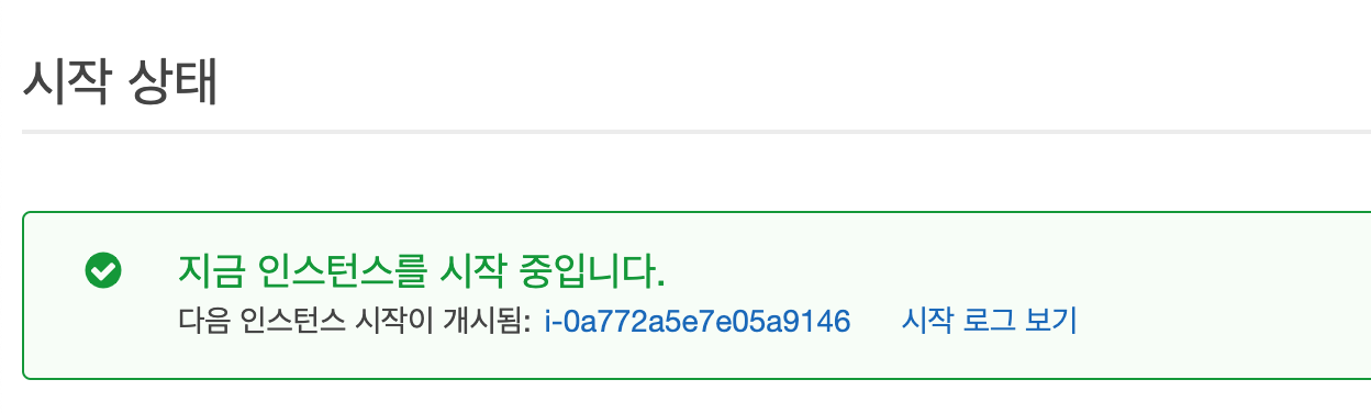 - 인스턴스 시작 버튼을 누르면 위의 사진과 같은 메세지가 출력된다.