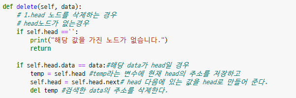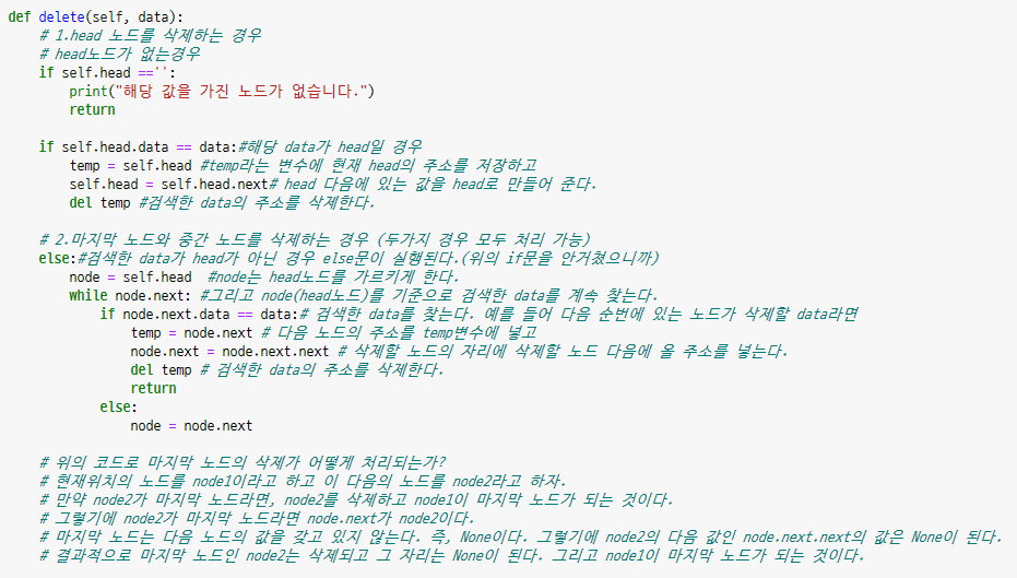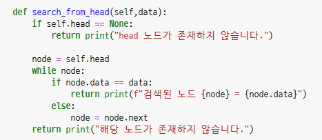 - 위의 코드와 비슷하겠죠? tail부터가 아니라 head부터 검색하고 prev가 아니라 next로 바꿔주면 됩니다.