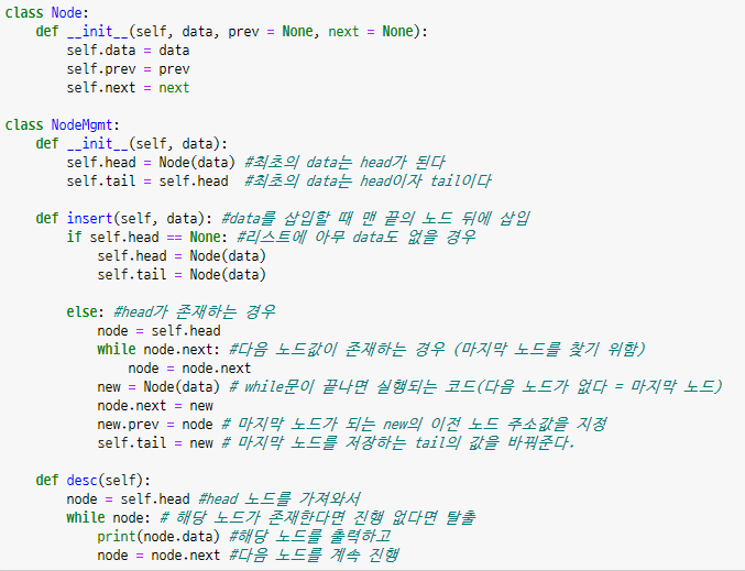 - Double Linked List구조를 만든 코드의 desc메소드 아래에 이어서 작성하면 됩니다.